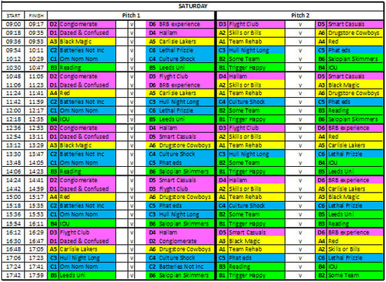 Following the recent sedding draw, here is the schedule for Saturday. A full schedule will be sent to team captains and will also be available on the day.