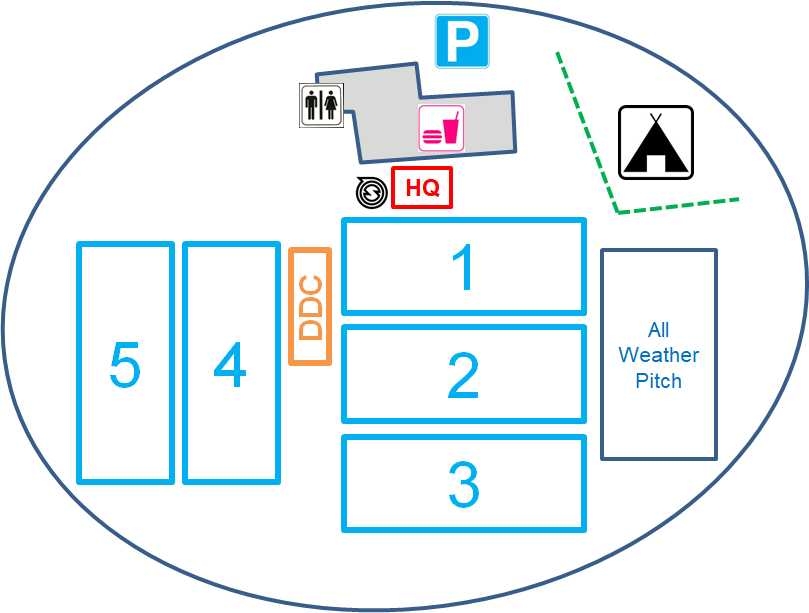 *After some deliberation, we have gone for a single pool format, over five pitches. This enables us to ensure suitable breaks for all teams in the schedule (50 mins, 100 mins and 50 mins on Saturday; 90 mins minimum on Sunday).